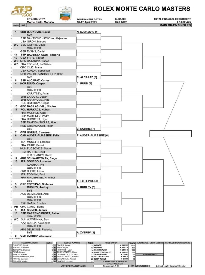 2022蒙特卡洛大师赛已经正式开始了,在今年蒙特卡洛更是引进了德约维奇以及阿尔卡拉斯等人,从签表中可以看出德约想要夺冠并非一件易事