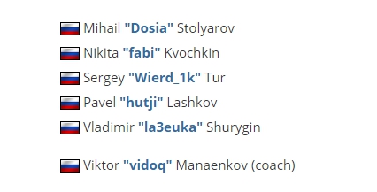 Dosia担任的位置是指挥,除他以外,还有他的老队友前Vega队员hutji,剩下的还有前buaksib的fabi和Wierd_1k以及19岁新人la3euka。