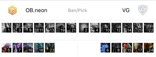 这次比赛可以看出Neon很好的利用了现在版本的强势英雄,以中前期的英雄去结束游戏,也很好的完成了任务,而VG似乎还是没有理解现在版本的要素吧,个人的发挥也有所欠缺。