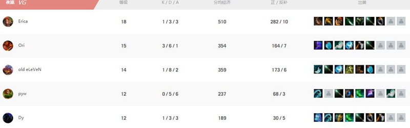 第一局双方的阵容节奏不一样,在前期没有什么太多的人头爆发,中期起VG依靠团战的拉扯让给经济取得了领先。
