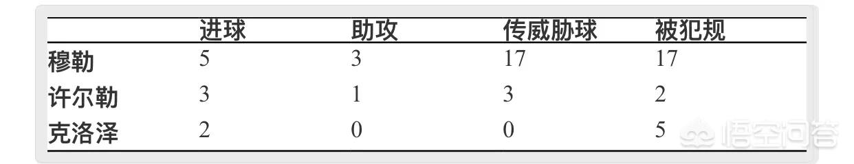 穆勒:首发7场,进5球3助攻,最主要还被侵犯17次,17次威胁球,几乎就是当届世界杯球王般的存在。