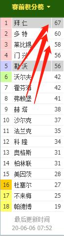 排名第一的是班霸拜仁,第二依旧是大黄蜂多特第三是新贵莱比锡红牛。