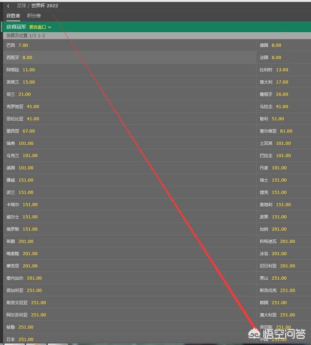 好像说了句废话,嗯,反正也不是重点,我们还是来看看赔率靠前的球队吧。