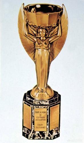 1928年法国雕刻家阿贝尔·拉夫勒设计和制造了世界杯奖杯——胜利杯:高35厘米,重约3.8公斤,由纯银制作,外表镀金,下面是一个用青金石制作的蓝色底座。底座的八面各镶了一块金牌,冠军球队的名字将被刻在上面。底座上方的模特是希腊传说中的胜利女神尼凯,她身着古罗马束腰长袍,双臂伸直,手中捧一只大杯。1950年该奖杯更名为雷米特杯以纪念世界杯足球赛始创者、前国际足联主席儒勒斯·雷米特。
