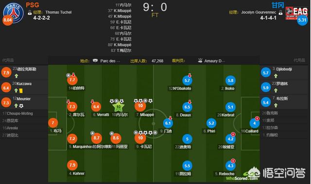 第二,姆巴佩帽子戏法是在球队9:0甘冈这种虐杀场次取得的,压倒性的优势,锋线姆巴佩和卡瓦尼都3球,后侧的内马尔也有2球,球队实力悬殊实在太大,没有对比性。